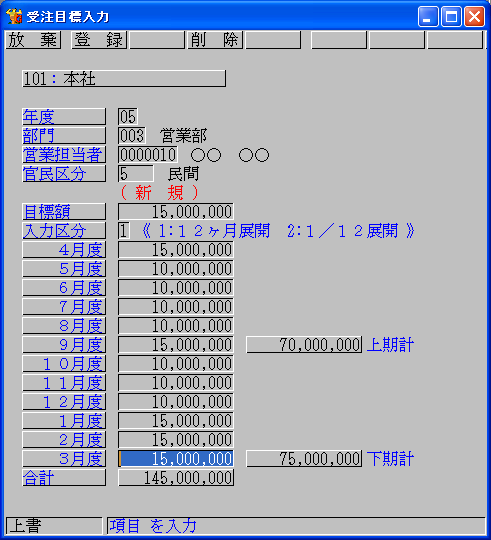 受注目標入力画面